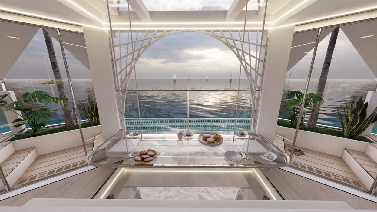 The Sea Urchin is an oasis of wonder and adventure offering a unique type of lodging on water. It consists of three floors; a submerged portion offering a chance to all groups of people to explore the depths of the ocean and the above-water floors providing exceptional views, with world class amenities all within an airy space.